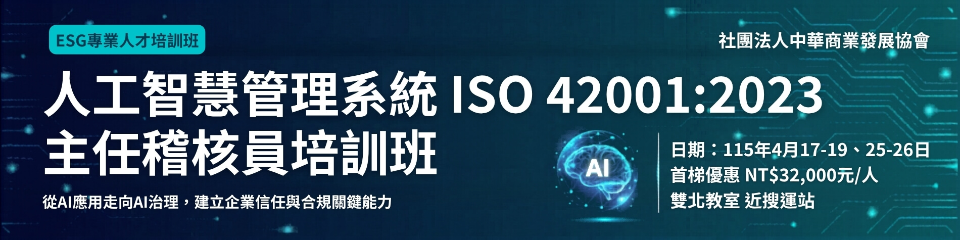 | 【ESG 專業人才培訓班】從盤查到揭露治理:IFRS S2 × 範疇三 實務全攻略(二日) | 5/16, 5/23 | 台北 | 原價 : NT$10,000元 /人 早鳥價:NT$9,000元/人 會員或團報:NT$9,000元 /人 | 招生中 | 點擊報名 |