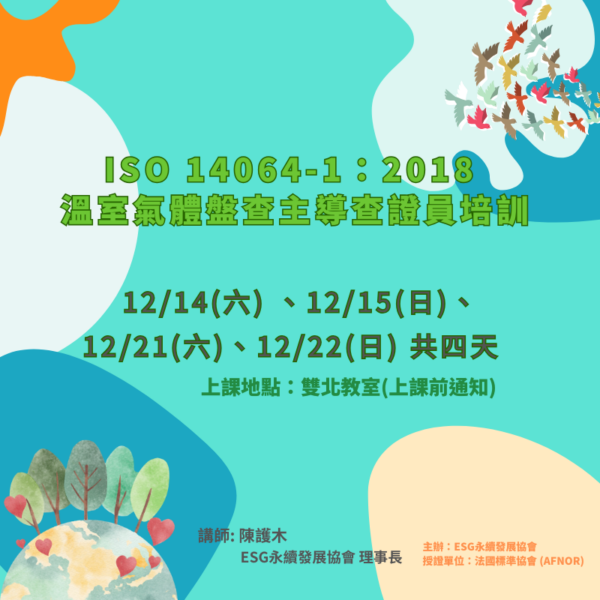 ISO 14064-1:2018溫室氣體盤查主導查證員培訓班